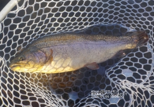 45センチのロックサーモンです。クランクで。
