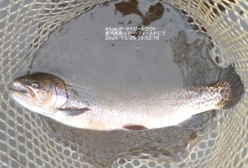 45センチアップのタイガートラウトです。スプーンで。